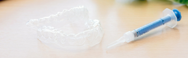 マウストレーにホワイトニング剤を3分の1ほど注入し、お口に装着します。1日6~8時間程度装着したままでお過ごしください。使用後はマウストレーを外し、トレーに残った液を水洗してください。歯ブラシで歯に残っている液も清掃します。